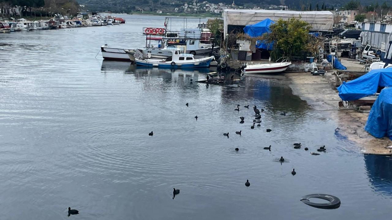 Kent merkezinden geçerek Çanakkale Boğazı'na dökülen Sarıçay, son günlerde nadir görülen ve dikkat çekici misafirlerini ağırlamaya başladı. Nehrin durgun sularında, parlak siyah tüyleriyle süzülen karabataklar, çevredekilerin büyük ilgisini çekti.