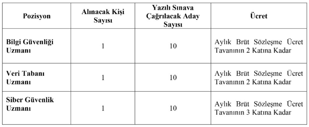 Bilgi Güvenliği Uzmanı – 1 kişi (ücret tavanının 2 katına kadar)