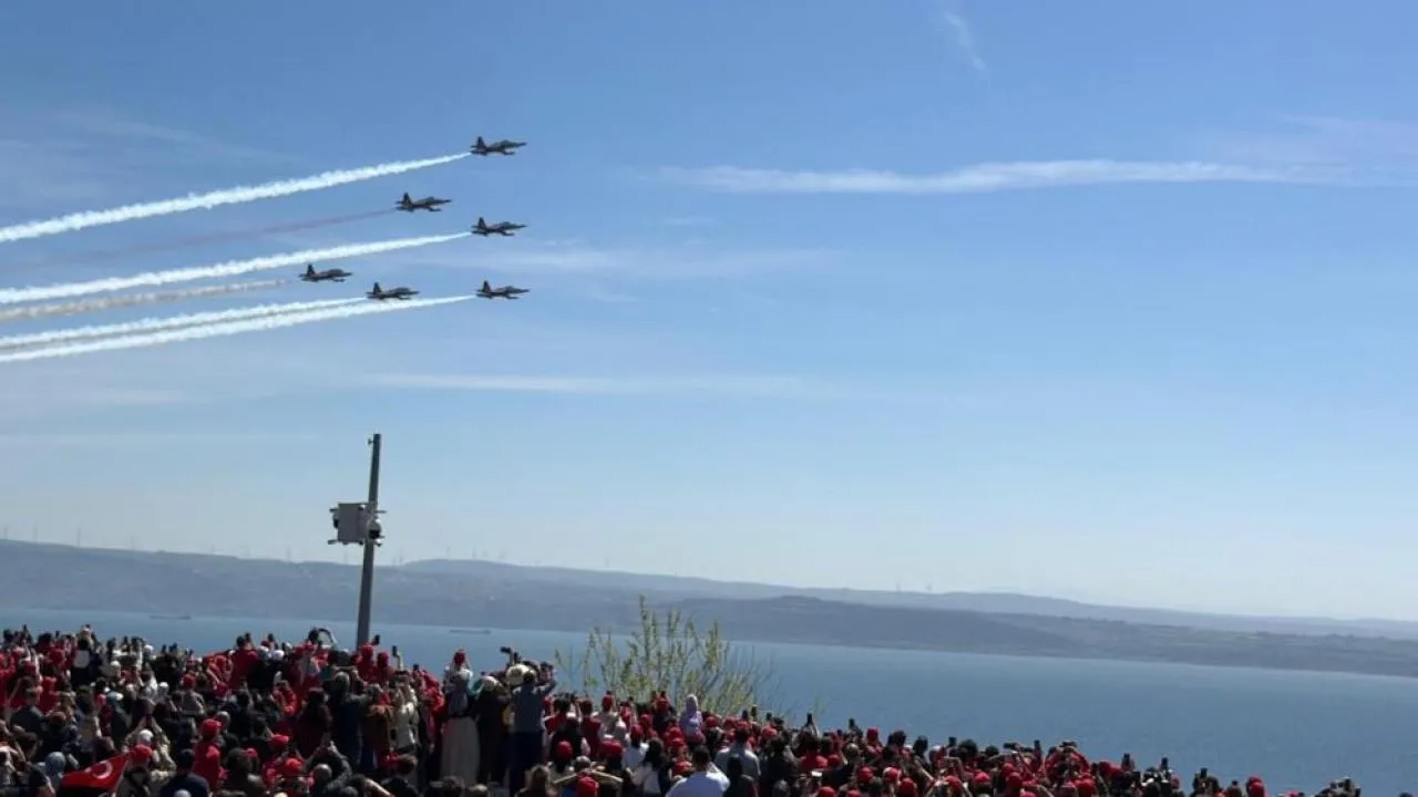 Törenin ardından sahne alan Türk Hava Kuvvetleri’nin gururu Türk Yıldızları, Şehitler Abidesi ve boğaz semalarında gösteri uçuşu gerçekleştirdi. Akrobatik hareketlerle gökyüzüne ay-yıldızı nakşeden pilotlar, izleyicileri heyecana boğdu. Abide’yi ziyaret eden binlerce vatandaş ve öğrenci, gösteriyi cep telefonlarıyla kaydederek bu tarihi ana tanıklık etti.