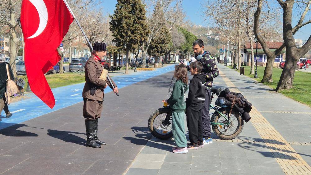 Saffet Gümüş, "Çanakkale'ye torundan dedeye vefa yürüyüşümüzün bu yıl 8'incisini yapıyoruz. Allah bu yıl da nasip eyledi. Tekirdağ'dayız şu an. Tabii yolumuz uzun. Şehitler yolu. Nasip olursa 16 Mart'ta Çanakkale Valimize bir bayrak vereceğiz, sonra orada 111 dakika nöbetimizi tutacağız. Çünkü 111. yılda. Bu vatan kolay kazanılmadı. Bu bayrak kolay kazanılmadı. Şu an Türkiye'nin şartlarını görüyoruz. Türkiye'mizin etrafı ateş çemberi. Vatan olmadan olmaz. Bayrak olmadan olmaz. Biz tabii bu yürüyüşümüzün adı farkındalık yürüyüşü. Gelecek nesillere Çanakkale'yi anlatmak, vatan sevgisini aşılamak. Allah bizi vatansız bırakmasın, bayraksız bırakmasın. Vatanımıza, milletimize, devletimize sahip çıkalım. Birlik olalım, beraber olalım. Büyüttükçe kardeş oluyoruz. Alevi'siyle, Kürt'üyle, Laz'ıyla, Çerkez'iyle, Boşnak'ıyla yani Türkiye'de ne kadar ırk ve cinsiyet varsa Çanakkale'de bundan 111 yıl önce beraberdik. Türkiye'nin dört bir yanından gittiler. Tek amaçları, tek gayeleri vardı; şu bayrak düşmesin, vatan bölünmesin. Vatansız olmaz, ezansız olmaz, Kur'an'sız olmaz" dedi.
