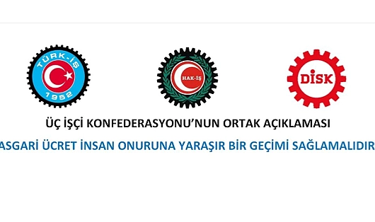 TÜRK-İŞ, HAK-İŞ ve DİSK Genel Başkanları, asgari ücret konusundaki gelişmeleri ve kamuoyuna yansıyan görüşleri değerlendirmiş, aşağıdaki ortak açıklamanın yapılmasını kararlaştırmışlardır: