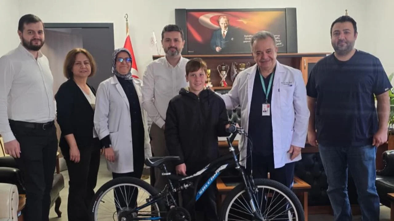 Hazırlanan bisiklet, Erdal Ünal tarafından minik Ayaz’a teslim edildi. Hastanenin başhekimlik makamında gerçekleştirilen buluşmada küçük çocuk hayatının en mutlu anlarından birini yaşadı.
