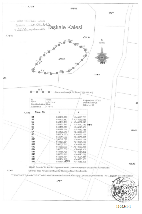 Taşkale I. derece arkeolojik sit geçiş dönemi koruma esasları da yeniden belirlendi. İlgili tapu müdürlükleri, söz konusu parseller için “Bir bölümü Taşkale I. derece arkeolojik sit alanında kalmaktadır.” şerhini tapu kayıtlarına işleyecek.