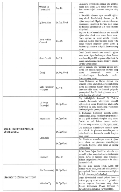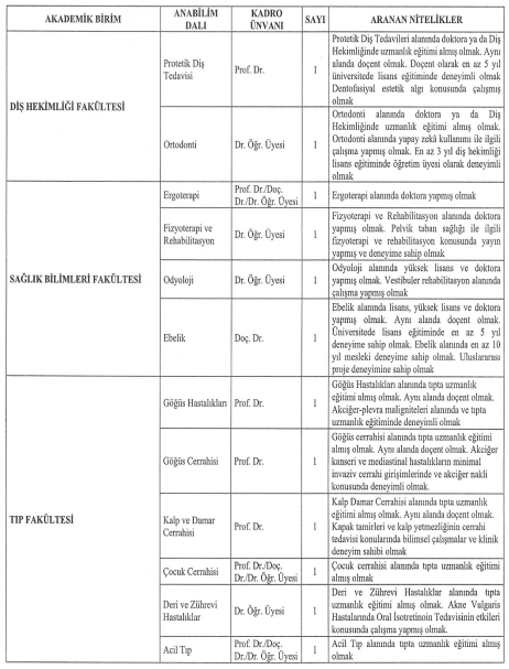Akademik kariyer hedefleyen adaylar için önemli bir fırsat sunan ilan kapsamında profesör, doçent ve doktor öğretim üyesi unvanlarında akademisyen istihdam edilecek.