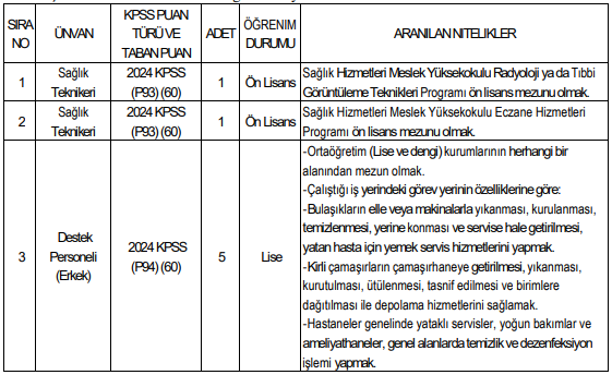 Sağlık Teknikeri (Toplam 2 kişi)