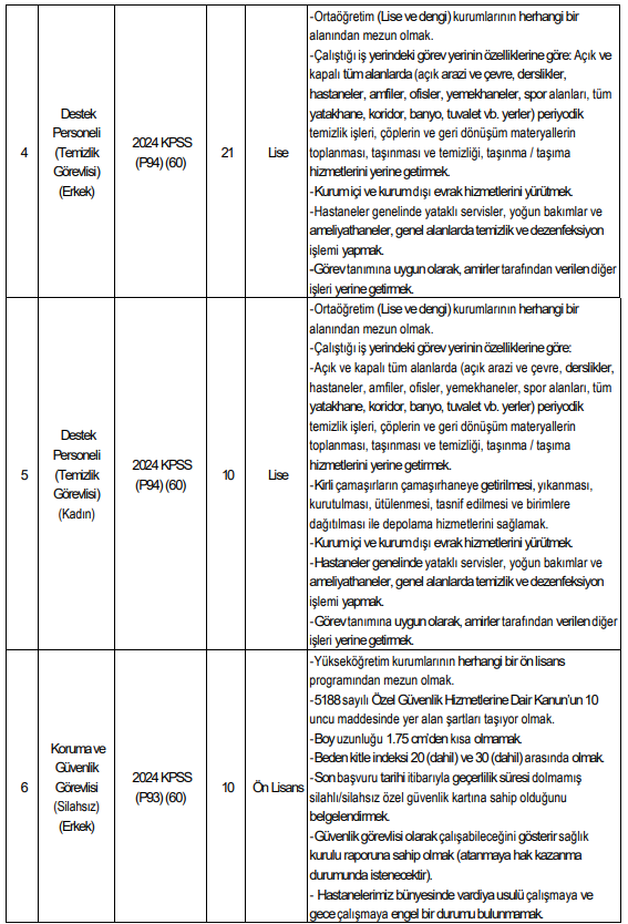 Destek Personeli – Erkek (5 kişi)