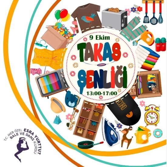 Esra Yurttut Bale ve Dans Kursu tarafından yılda iki kez düzenlenen Takas Şenliği 9 Ekim Pazar günü 13.00 ve 17.00 Saatleri aralığında gerçekleşecek. Esra Yurttut Bale ve Dans Kursu ekibi etkinliğin amacını şöyle açıkladı‘’Tüketim alışkanlıklarımız, çıkarttığımız çöp, sürdürülebilir yaşam alternatifleri, sanatın dönüştürücü ve birleştirici gücü hepsi bir bütün. Farklı seçeneklere karşı bakış açımız değiştikçe renkleniyoruz. Takas Şenliği Etkinliği ile çoklu katkı sağlayacak bir yapıyı hayata geçirdik. Katılımlarınız, paylaşımlarınız ve önerileriniz çok kıymetli. Bireysel olarak yapabileceğimiz çok şey olduğuna inanmakla beraber, birlikteliğin gücünü kullanarak çok daha etkili olabiliriz.’’ Takas Şenliğine katılım ücretsiz olup geri dönüşüm amaçlanmaktadır”