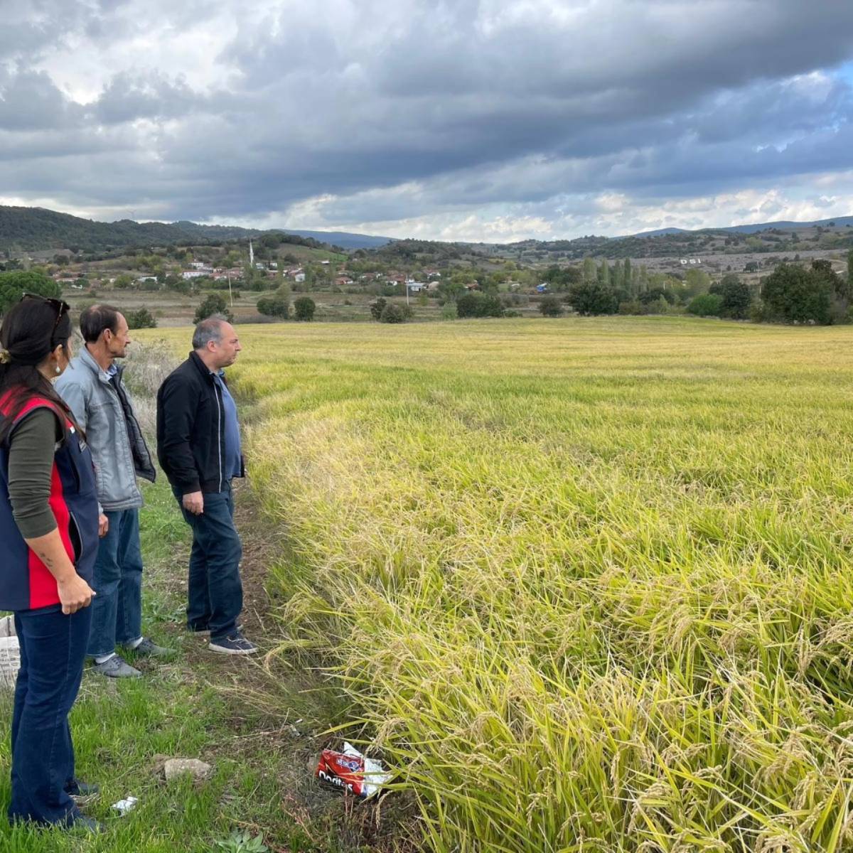 İnceleme kapsamında, damlama sulama yöntemiyle yetiştirilen çeltik alanları gezildi, bitki gelişim durumu, verim potansiyeli ve su tasarrufu konularında değerlendirmeler yapıldı.