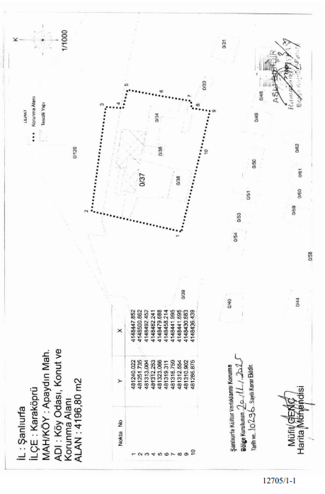 Korunma alanının ekli 1/1000 ölçekli koordinatlı haritada gösterildiği şekilde tespit edilmesi,