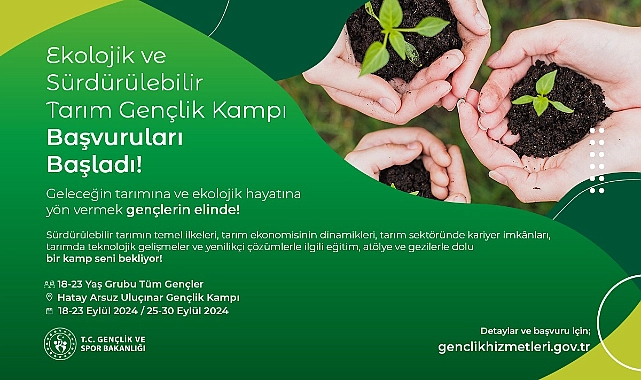Bakan Bak, sosyal medya hesabından yaptığı açıklamada, Hatay’da düzenlenecek Ekolojik ve Sürdürülebilir Tarım Gençlik Kampı'nın detaylarını paylaştı. 18-23 yaş arasındaki gençlere açık olan kamp için başvuruların 30 Ağustos'a kadar devam edeceğini belirtti. Kampın, genç çiftçilere ve tarım sektörüne ilgi duyan gençlere yönelik olarak hazırlandığını ifade eden Bakan Bak, “Geleceğin tarım sistemlerini öğretmek ve kariyer imkânlarını anlamak için atölye ve gezilerle dolu kampımıza bu alana ilgi duyan tüm gençlerimizi bekliyoruz,” dedi.
