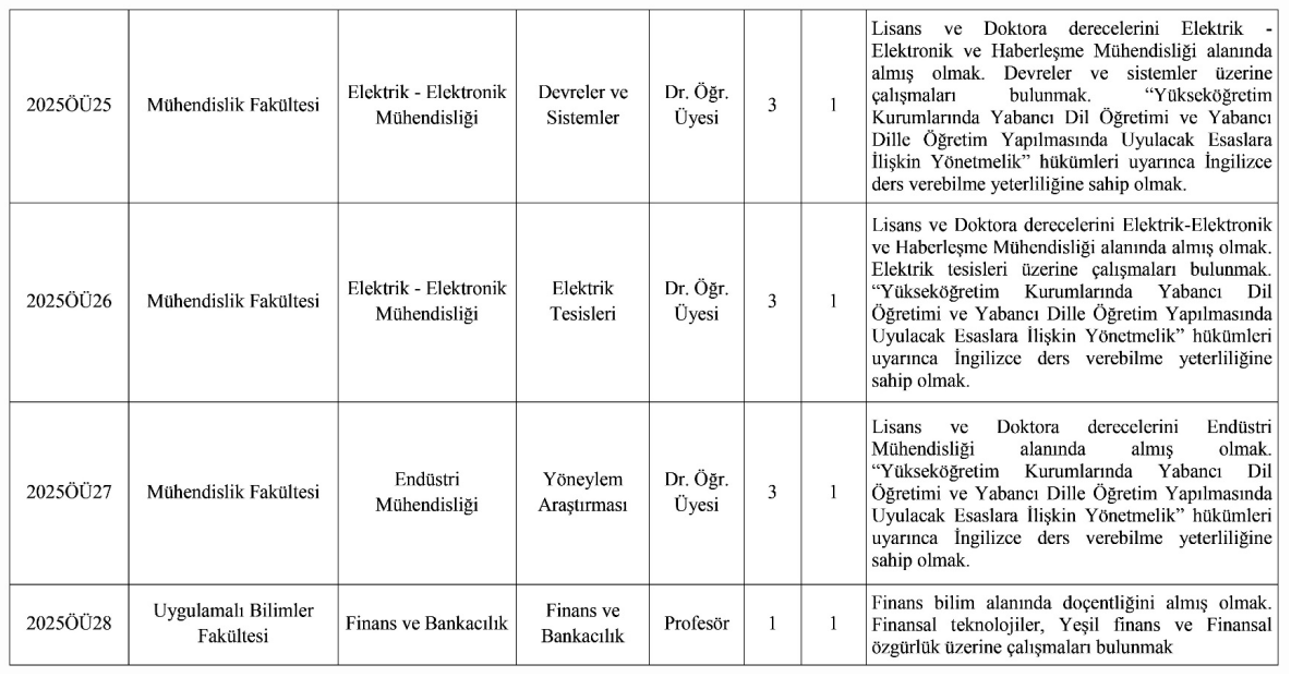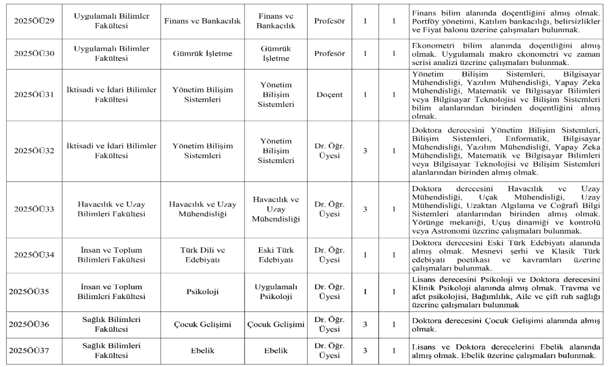 Alımlar, Profesör, Doçent ve Doktor Öğretim Üyesi unvanlarında gerçekleştirilecek.
