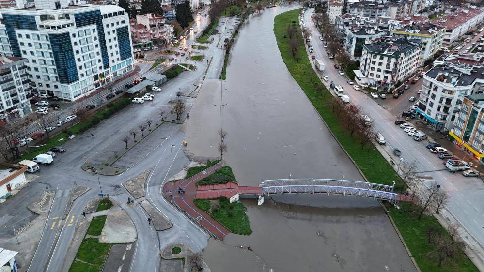 Çanakkale’de son yağışlarla birlikte Atikhisar Barajı’nın su seviyesinin yüzde 100’e ulaşmasının ardından devam eden yağışlar nedeniyle kenti ikiye bölen Sarıçay’da su debisinin yükselmesiyle yer yer taşmalar meydana geldi. Taşan Sarıçay dron ile görüntülendi.