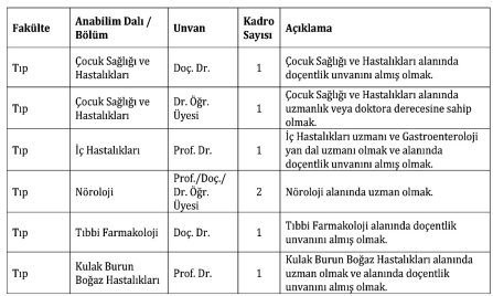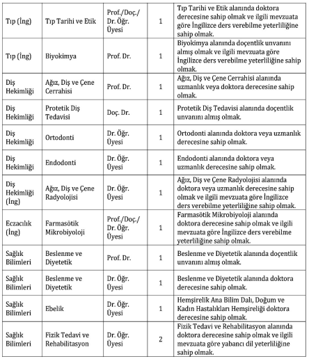 Alımlar, üniversiteye bağlı birimlerin ihtiyaçları doğrultusunda yapılacak olup, adayların başvuracakları kadroya ilişkin özel şartları sağlamaları gerekiyor.