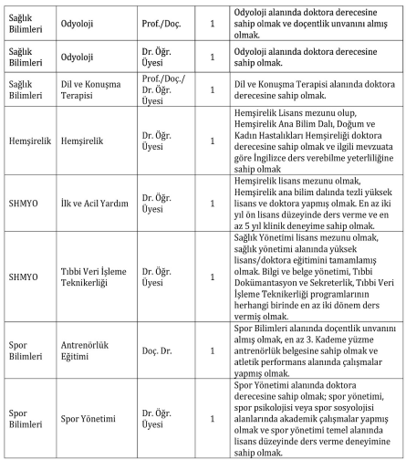 Üniversite tarafından yapılan açıklamada, İngilizce programlarda görevlendirilecek adaylar için ayrı bir şartın altı çizildi. Buna göre, bu programlarda ders verecek adayların, ilgili mevzuat hükümleri uyarınca İngilizce ders verebilme yeterliliğine sahip olmaları gerekiyor. Yabancı dil yeterliliği, YÖK tarafından kabul edilen sınav sonuçları veya eşdeğer belgelerle kanıtlanacak.