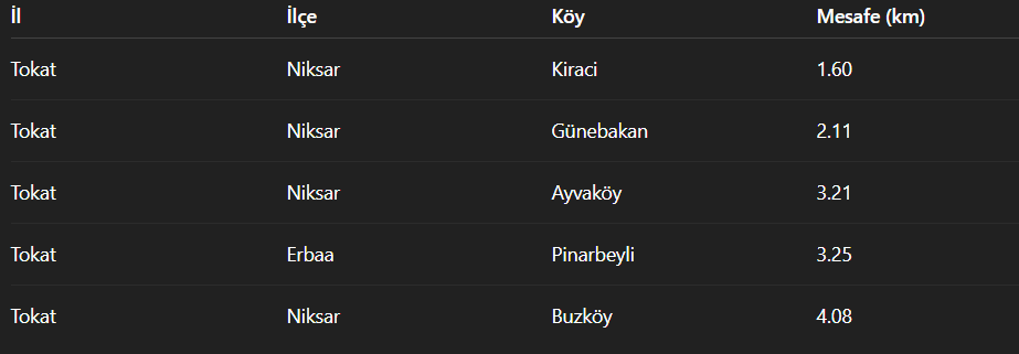 En yakın köy: Kiraci, Niksar – 1.60 km