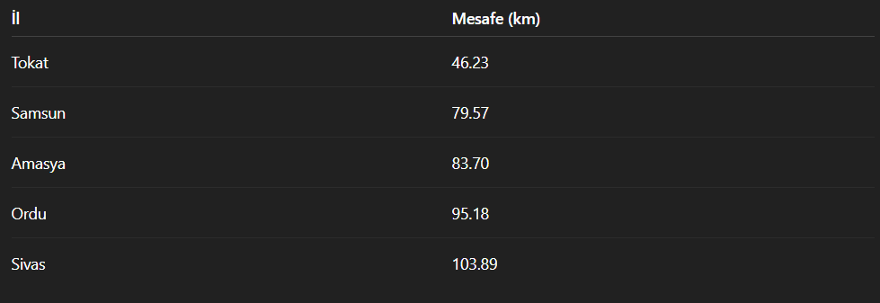 Merkez üssüne yakın beş il merkezi: