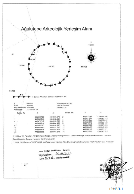 Tapu beyanlarına “Bir bölümü Ağulutepe Arkeolojik Yerleşim Alanı I. derece arkeolojik sit alanında kalmaktadır” şerhi işlendi.