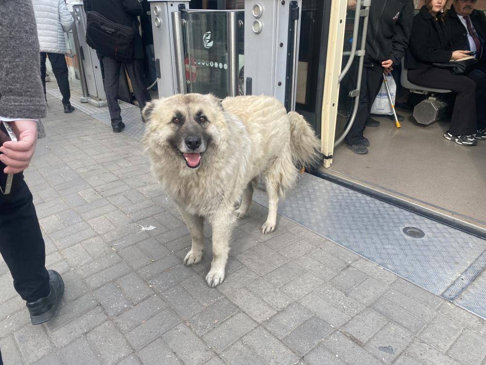 SSK - Otogar hattında sefer yapan tramvaya bir sokak köpeği bindi. Vatandaşlarla birlikte yolculuk eden sevimli hayvan, dikkatleri üzerine topladı. Köpeği şefkatle seven bir çocuk, uzun süre onun başından ayrılmadı. Gitmeye çalıştığında ise köpek, çocuğa pati atarak kendisini sevmeye devam etmesini istedi.