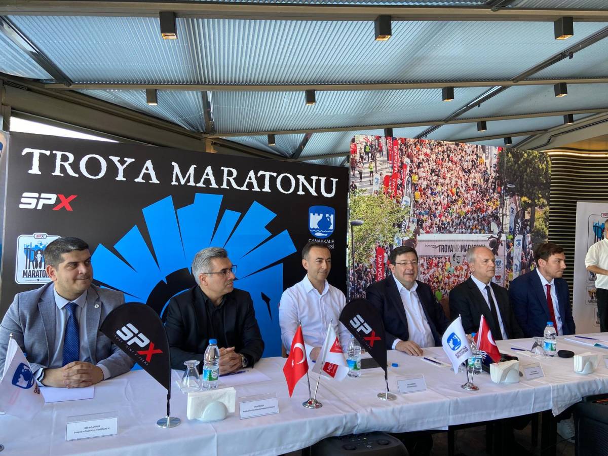 Troya Maratonu’nun tanıtım toplantısına Çanakkale Belediye Başkanı Muharrem Erkek başta olmak üzere, Gençlik ve Spor İl Müdürü Ömer Kalkan, SPX Genel Müdürü Barış Andırınlı, Gençlik ve Spor Hizmetleri Müdür Vekili Gökay Şahiner, Medikal Park Çanakkale Hastanesi Müdürü Erkan Erdem ve Troya Maratonu Koordinatörü Abdullah Bayrak katıldı. Toplantıda konuşan Çanakkale Belediye Başkanı Muharrem Erkek, bu organizasyonun Çanakkale’nin vizyonunu yansıtan en önemli projelerden biri olduğunu vurguladı. Geçtiğimiz yıl ilki düzenlenen yarışın büyük ses getirdiğini hatırlatan Erkek, bu yıl kapsamın daha da genişletildiğini ve tam maraton etabının eklenmesiyle heyecanın katlandığını ifade etti.