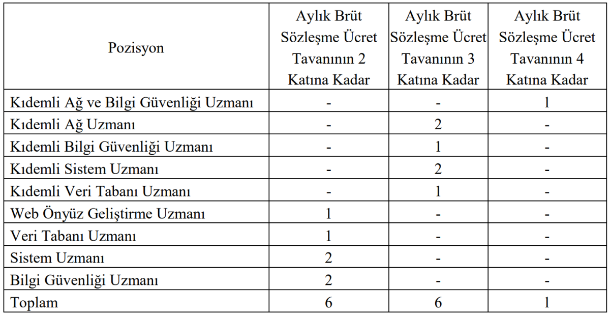 Bilgi Güvenliği Uzmanı: 2 kişi