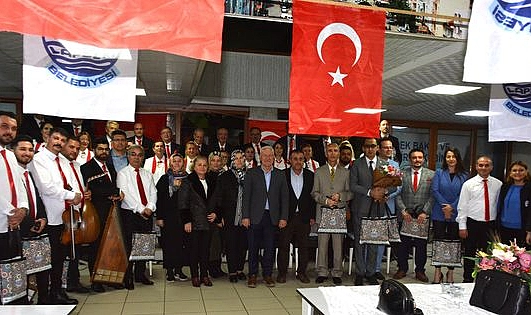 Konser sonrasında Eyüp Yılmaz, Lâpseki Belediyesi Türk Sanat Müziği Koro üyelerine teşekkür ederek, çiçek ve hediyelerini takdim etti.