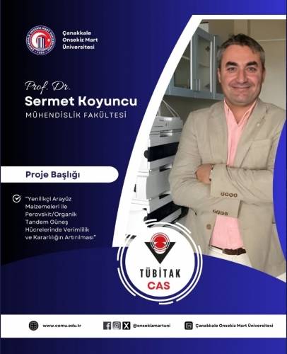 Çanakkale Onsekiz Mart Üniversitesi (ÇOMÜ) öğretim üyesi Prof. Dr. Sermet Koyuncu, TÜBİTAK ile Çin Bilimler Akademisi (CAS) iş birliğinde yürütülen 2568 – CAS İkili İşbirliği Programı 2025 Yılı Çağrısı kapsamında yapılan değerlendirmeler sonucunda destek almaya hak kazandı.