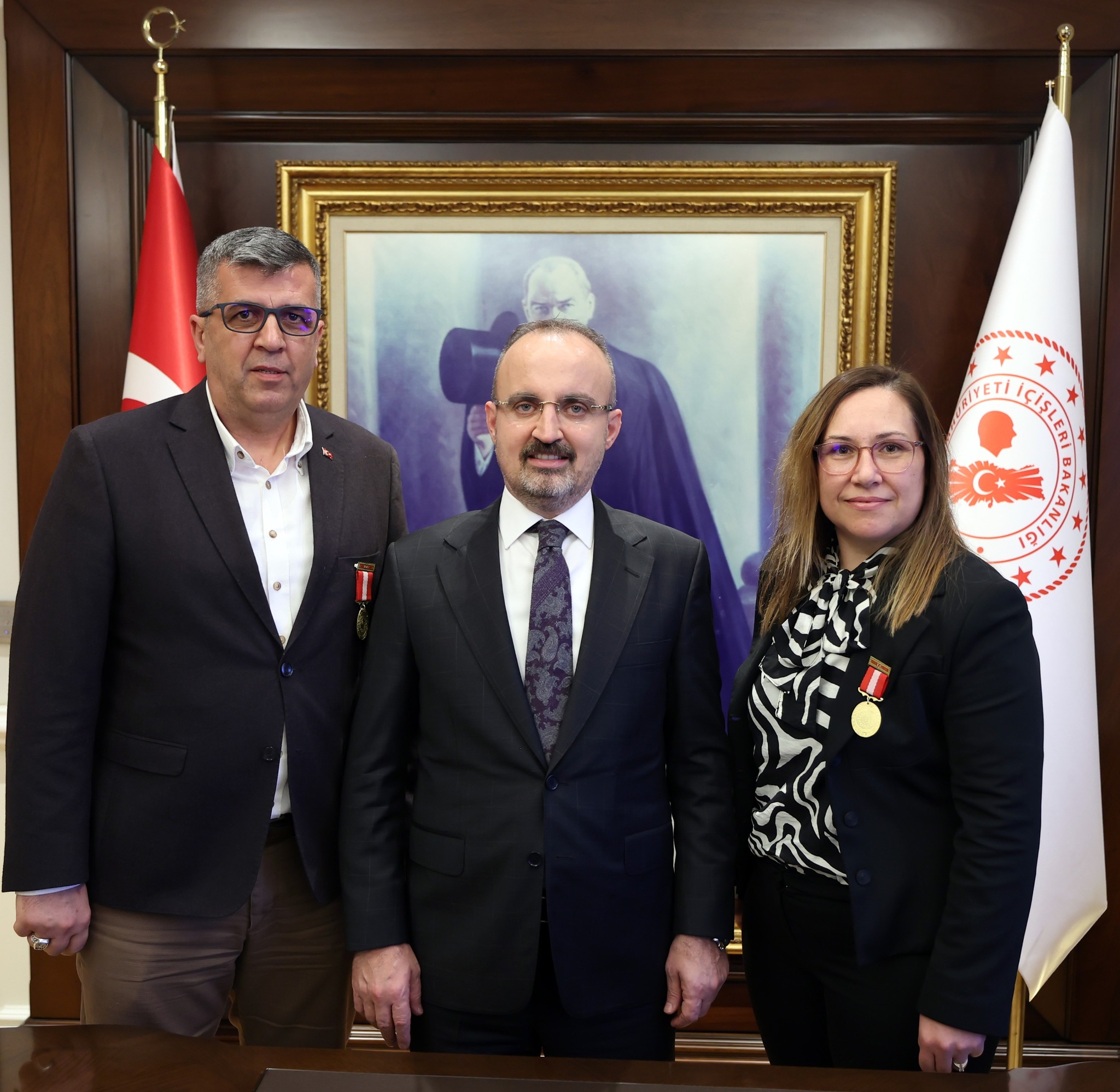 Turan heyete, bakanlık çalışmaları hakkında bilgi vererek, Güvenlik ve Acil Durumlar Koordinasyon Merkezini de(GAMER) gezdirdi. Heyet Turan’a plaket vererek, hatıra fotoğrafı çektirdi.