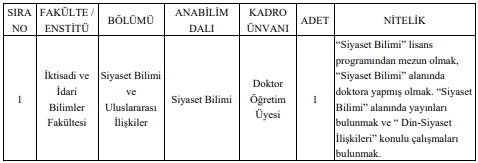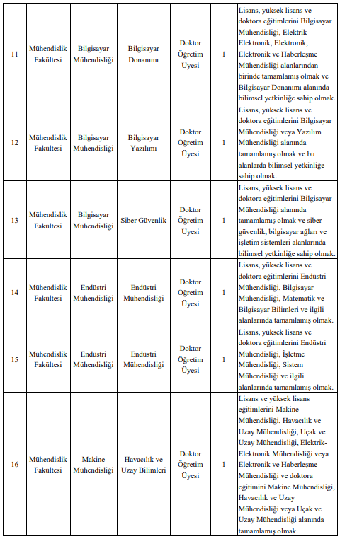 Fen Fakültesi, Mühendislik Fakültesi, İktisadi ve İdari Bilimler Fakültesi, Hukuk Fakültesi ve Yabancı Diller Yüksekokulu’nda farklı bölümlere araştırma görevlisi ve öğretim görevlisi alınacak. Araştırma görevlisi kadrolarına başvuracak adayların tezli yüksek lisans veya doktora öğrencisi olması ve 35 yaşını doldurmamış olması gerekiyor.