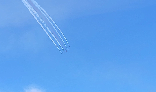 Mehmetçiğin 110 yıl önce düşmana geçit vermediği Çanakkale Boğazı semalarında gösteri uçuşu yapan Türk Yıldızlarını binlerce Çanakkaleli coşkuyla izledi.