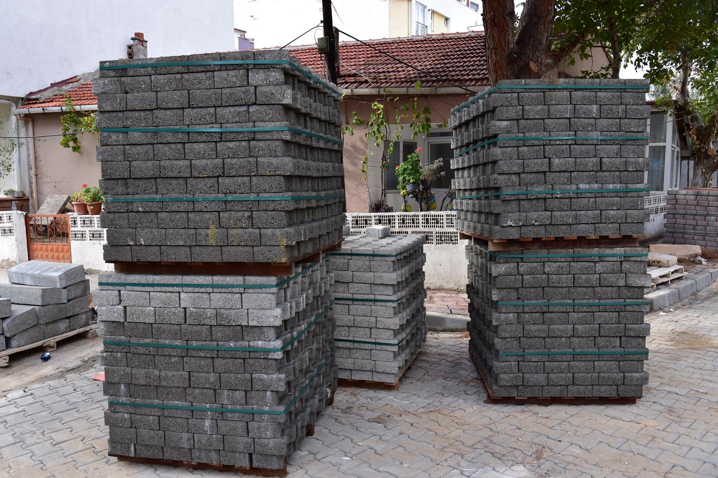 Çanakkale Belediyesi bağlı ekipler Türkgücü Caddesi'nde taş döşeme çalışmasına devam ediyor.