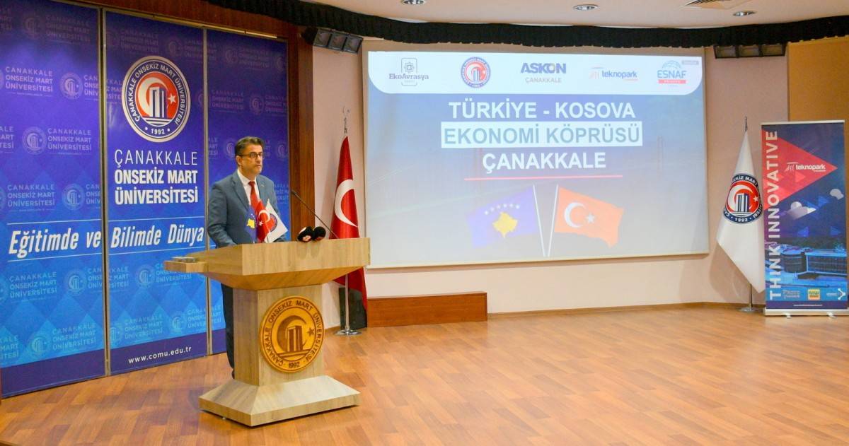 Çanakkale Onsekiz Mart Üniversitesi (ÇOMÜ), Türkiye ile Kosova arasındaki ekonomik ilişkileri güçlendirme amacıyla önemli bir buluşmaya ev sahipliği yaptı. Askon Çanakkale organizasyonunda, EkoAvrasya Vakfı ve Esnaf Prizren Derneği iş birliğiyle düzenlenen “Türkiye–Kosova Ekonomi Köprüsü” etkinliği, Troya Kültür Merkezi’nde gerçekleştirildi.