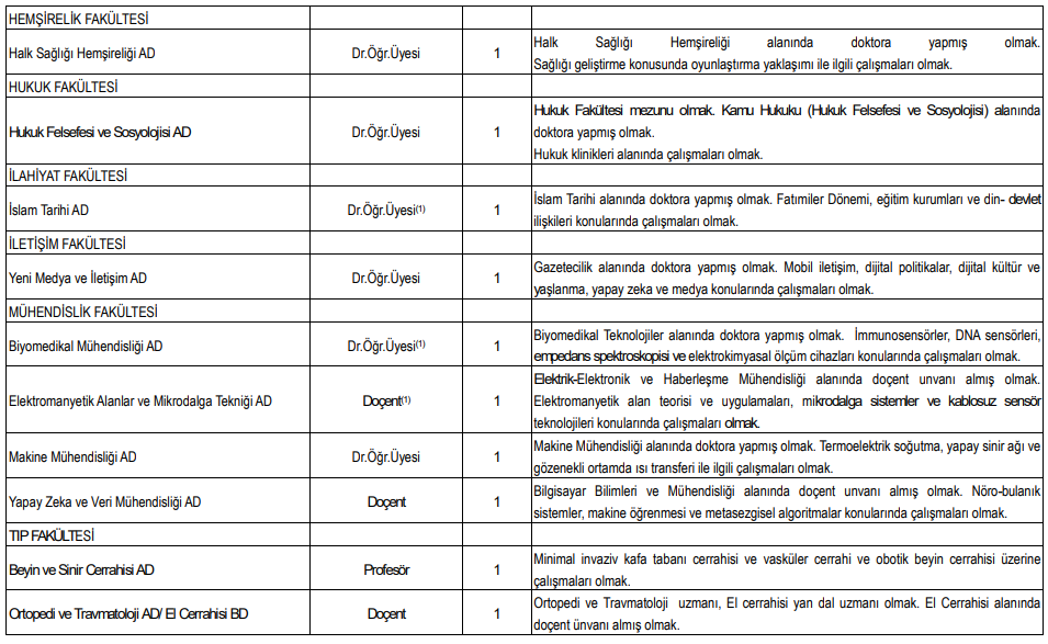 ÖĞRETİM ÜYESİ KADROLARI HANGİ BİRİMLERDE?