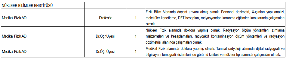 Bunların yanı sıra Hızlandırıcı Teknolojiler Enstitüsü ve Nükleer Bilimler Enstitüsü bünyesinde de akademik kadrolar açıldı.