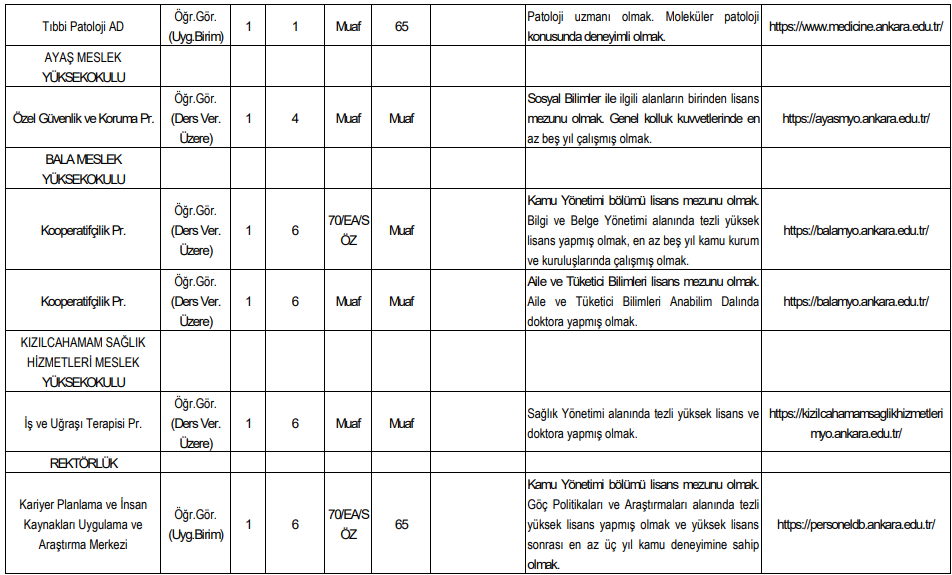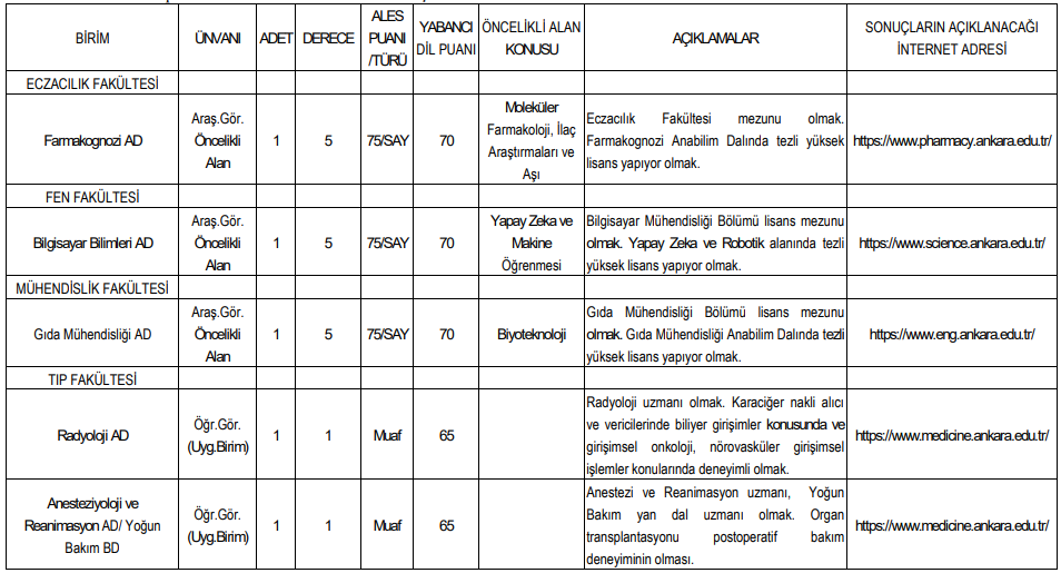 İlana ilişkin tüm ayrıntılara ve başvuru süreçlerine http://www.ankara.edu.tr/ adresinden ulaşılabilecek.