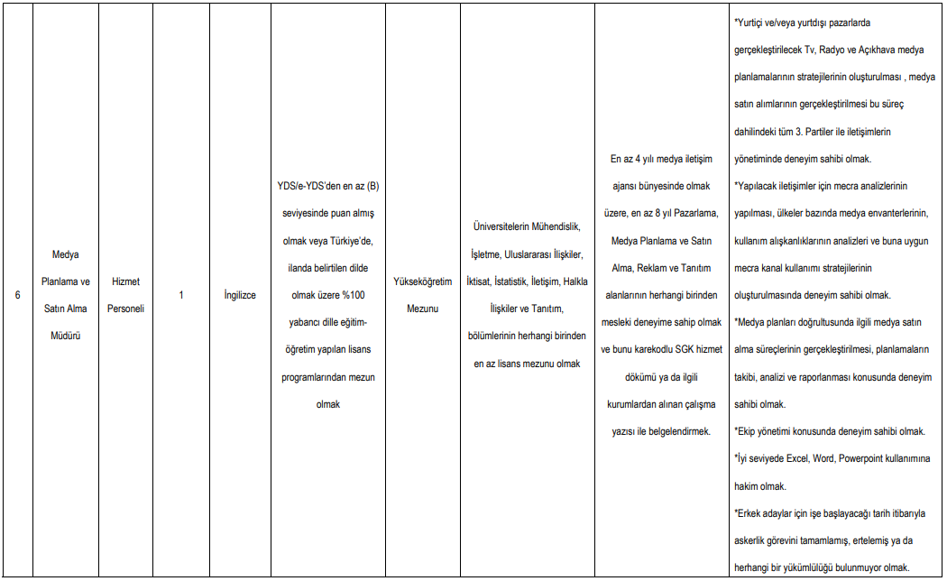 Bu şartları sağlayan adaylar, ilan edilen pozisyonlara başvuru yapabilecek.