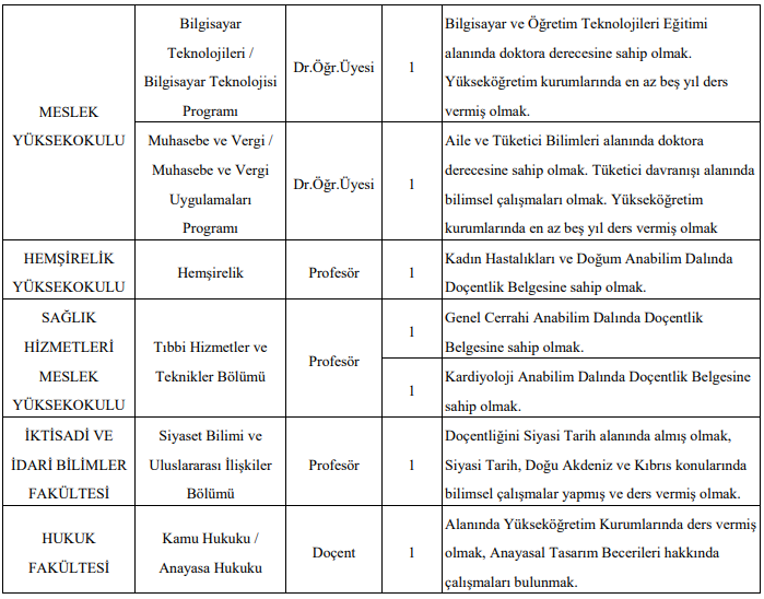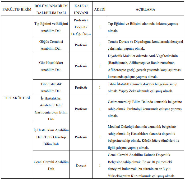 Başvuru koşulları ve ilan detayları ayrıca üniversitenin resmi web sitesinde yayımlandı.