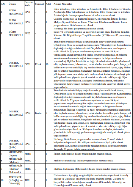 İlanda yer alan bilgilere göre alım yapılacak kadrolar oldukça geniş bir yelpazeye yayılıyor. Büro personeli, destek personeli, mühendis ve tekniker kadroları dikkat çekiyor.