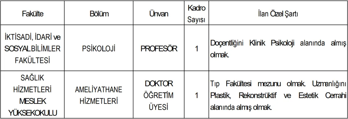 İlanlarda yer alan şartlara göre adayların 2547 sayılı Yükseköğretim Kanunu’nda belirtilen kriterleri taşıması gerekiyor. Ayrıca her kadro için özel şartlar da bulunuyor.