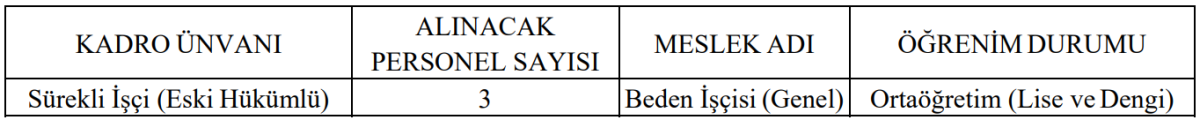 İlana göre alınacak personellerin unvanı ve öğrenim durumu şu şekilde açıklandı: