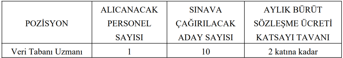 Alım yapılacak kadro ise Veri Tabanı Uzmanı olarak duyuruldu.
