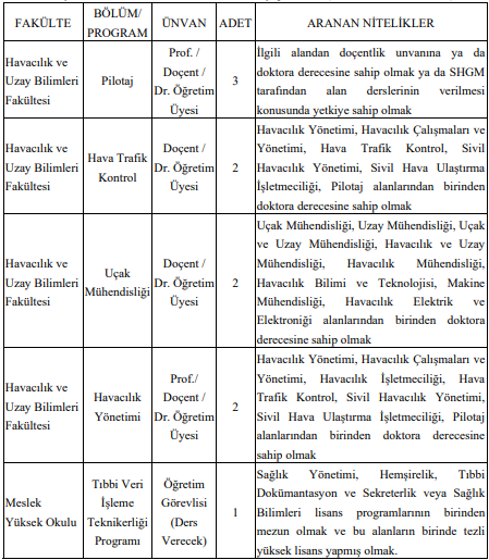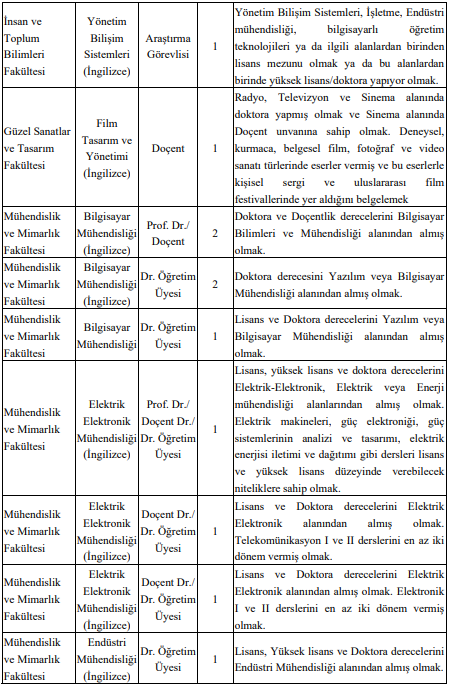 Üniversite bünyesinde profesör, doçent, doktor öğretim üyesi, öğretim görevlisi ve araştırma görevlisi kadrolarında alım yapılacak. Açılan kadroların toplam sayısının 20’nin üzerinde olduğu dikkat çekiyor.