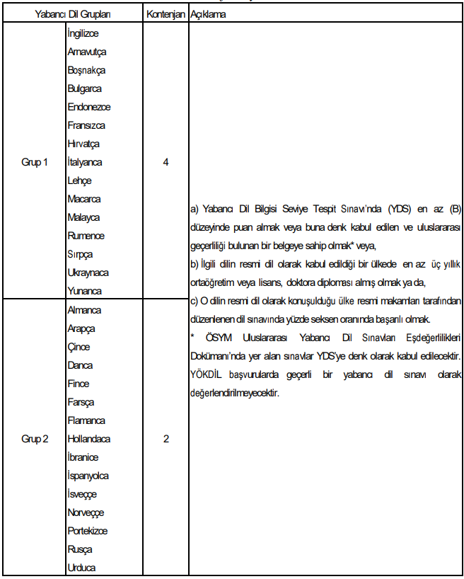 şartları aranıyor. YÖKDİL sınavı, yabancı dil şartı kapsamında kabul edilmiyor.