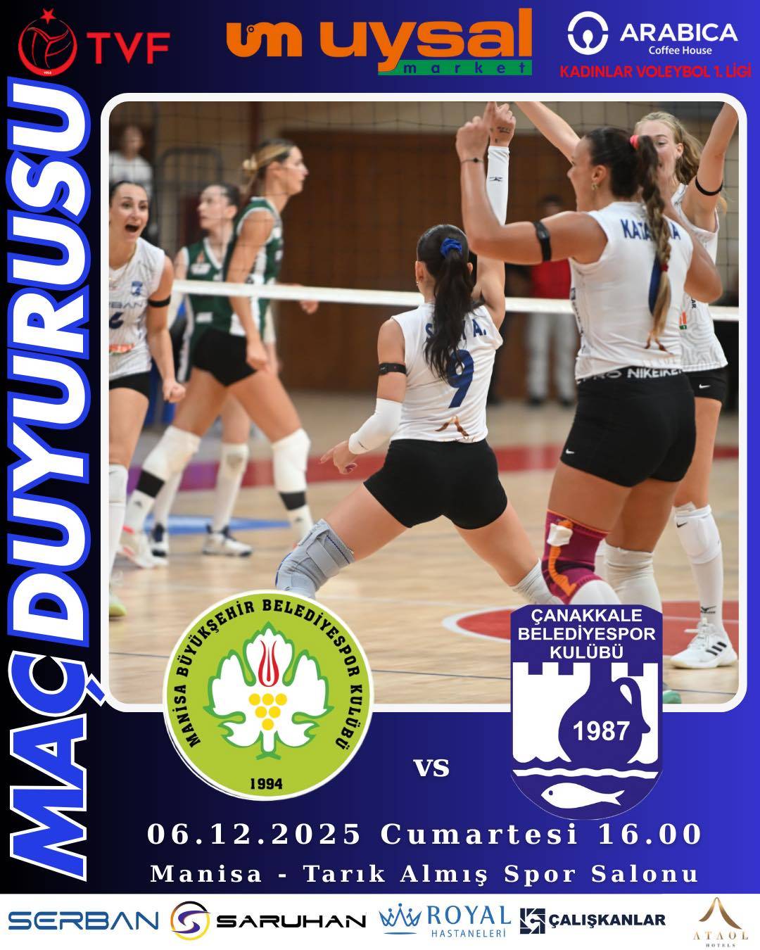Türkiye Voleybol Federasyonu Arabica Coffee House Kadınlar 1. Ligi'nde heyecan 12. hafta karşılaşmalarıyla sürüyor. Ligin dikkat çeken mücadelelerinden biri, 6 Aralık 2025 Cumartesi günü Manisa'da oynanacak. Vestel Manisa Büyükşehir Belediyespor, Tarık Almış Spor Salonu’nda güçlü rakibi Çanakkale Belediyespor'u ağırlayacak. Saat 16.00’da başlayacak karşılaşma, lig sıralamasının şekillenmesi açısından büyük önem taşıyor.