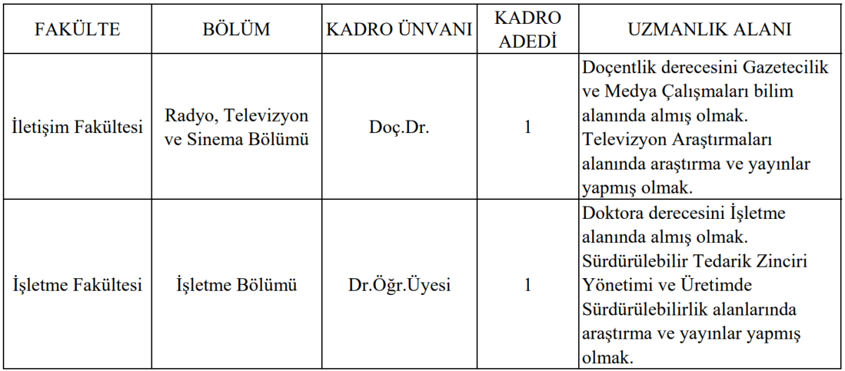 Bu kadrolar, üniversitenin eğitim-öğretim kalitesini artırmak ve akademik araştırma kapasitesini güçlendirmek amacıyla açıldı.