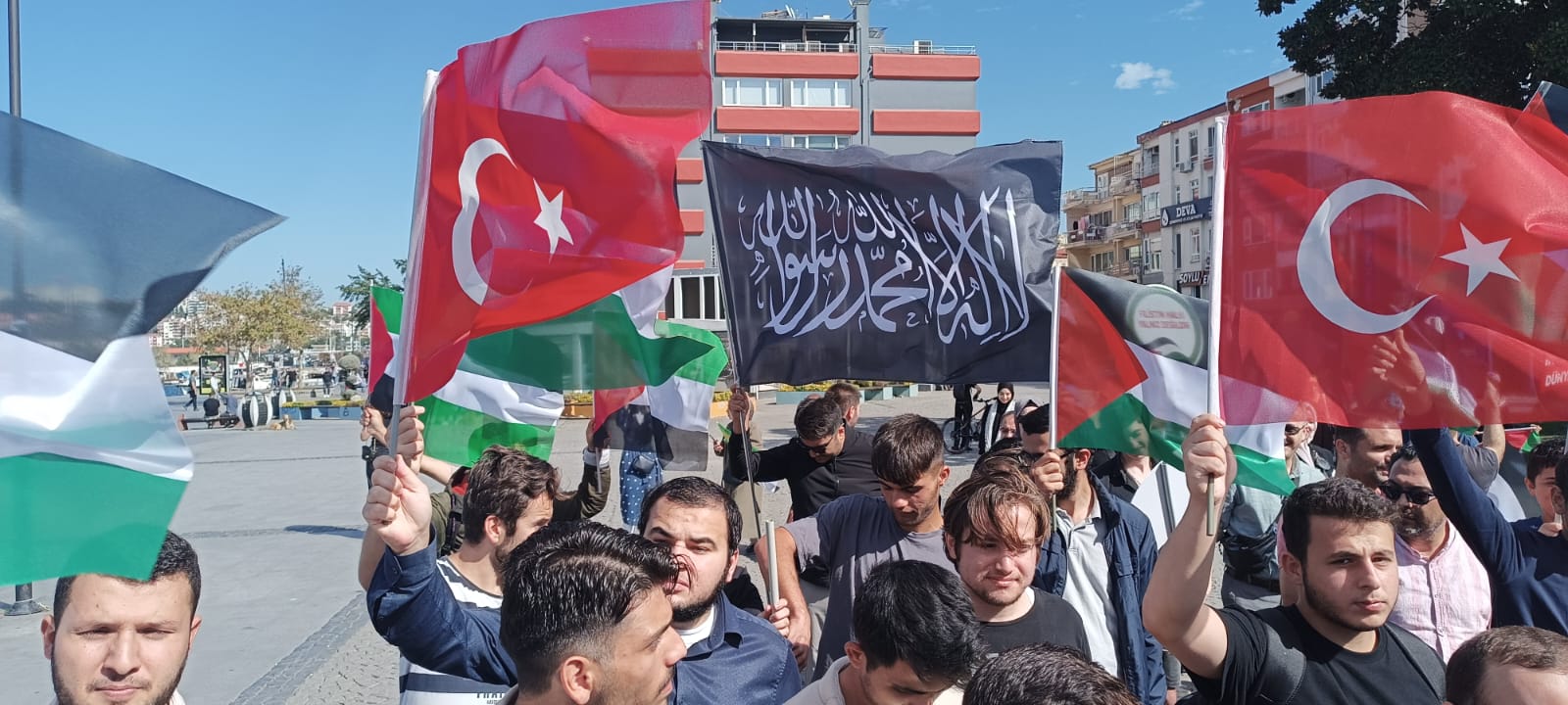 İsrail'in Mescidi Aksa'ya ve Filistin'e yönelik saldırıları kınamak için İskele Meydanı’nda toplanan gruplar basın açıklaması yaptı. Yapılan açıklamada; “Zulmün olduğu yerde tarafsızlık namussuzluktur. Siyonizme karşı onurluca direnen kardeşlerimize omuz vermek, kutlu direnişi selamlamak için buradayız” ifadeleri kullanıldı.