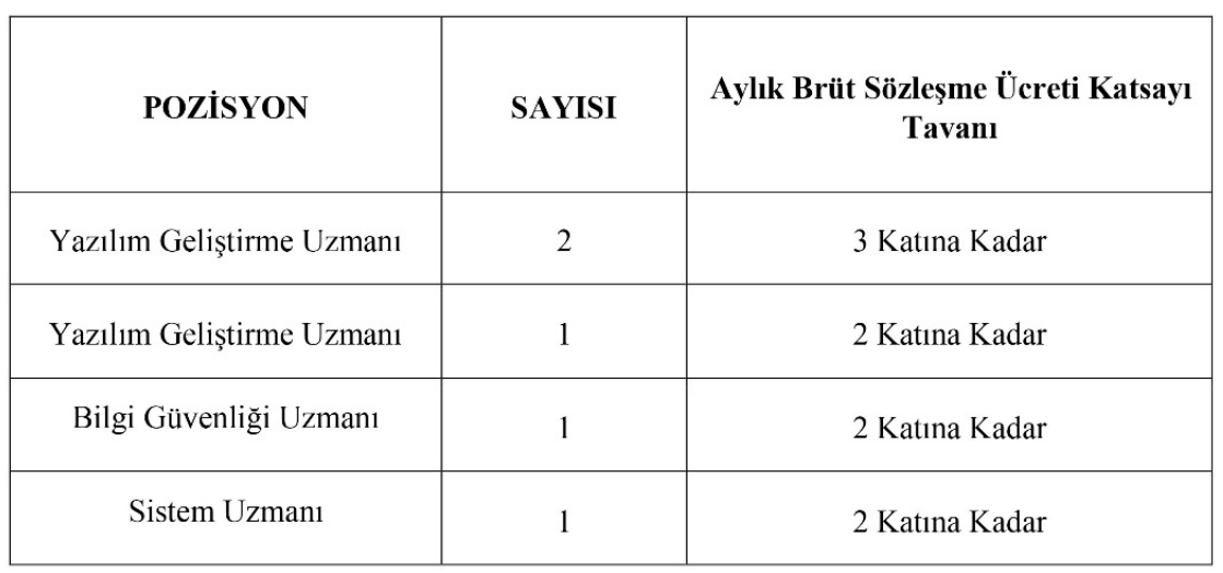 Yazılım Geliştirme Uzmanı (3 Kat Ücret Tavanı): 2 kişi