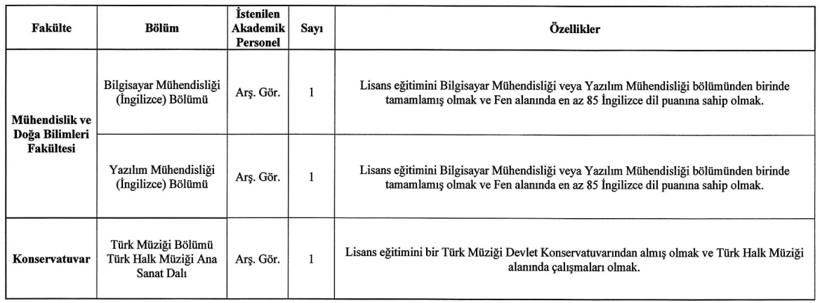 Başvurular, ilanın yayımlandığı tarihi izleyen 15 gün içerisinde ilgili akademik birime şahsen veya posta yoluyla yapılacak.