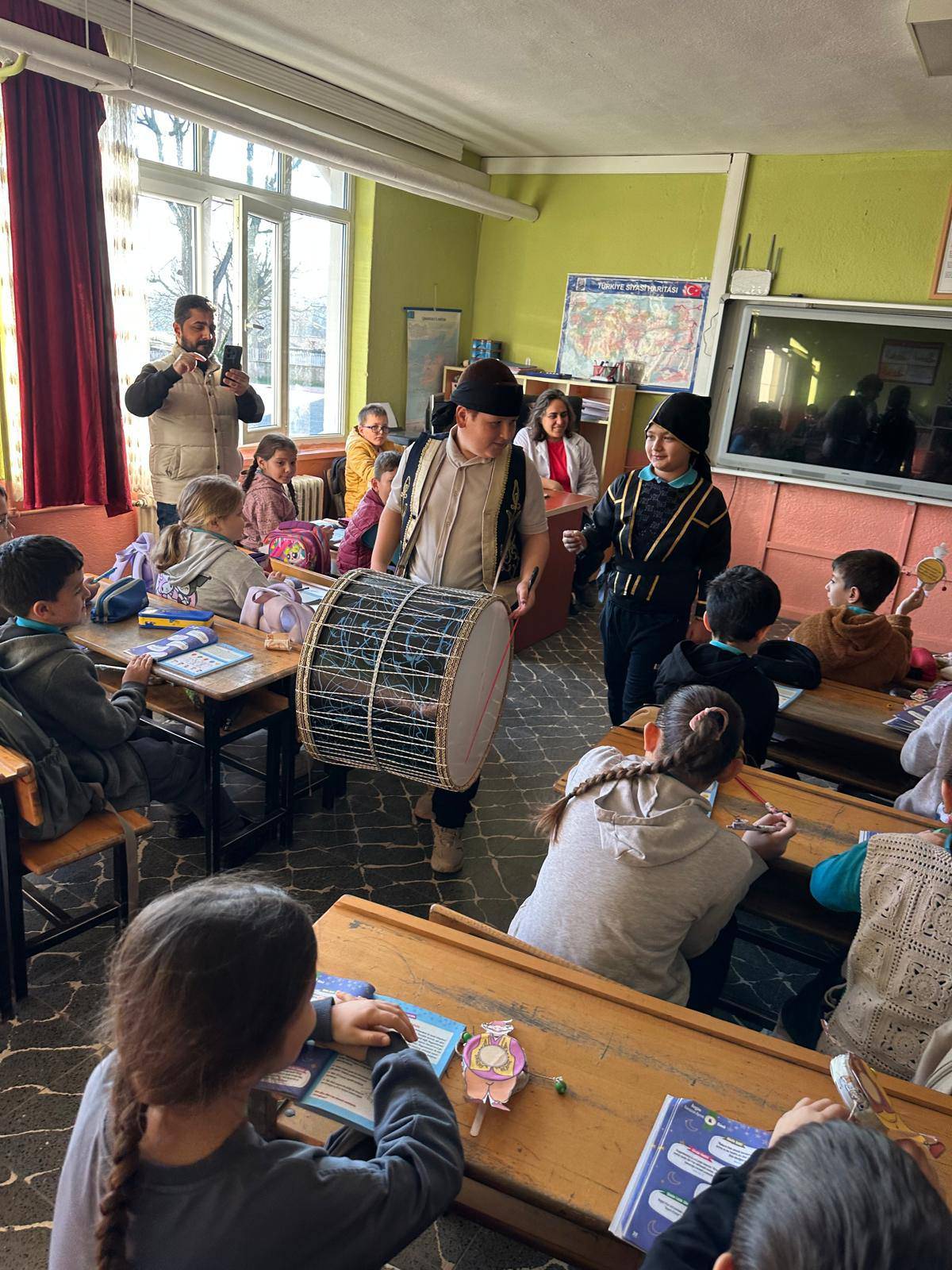 Okul bünyesinde düzenlenen etkinlikte, geleneksel kıyafetleri ve davuluyla sınıfları gezen "Ramazan Davulcusu", öğrencilere unutulmaz anlar yaşattı. Davul sesiyle yankılanan sınıflarda maniler söylenirken, minik öğrencilerin şaşkınlığı ve mutluluğu yüzlerine yansıdı. Geleneksel kostümler giyen bir öğrencinin arkadaşlarına bu kültürel mirası sergilemesi, sınıftaki dayanışma ve neşe dolu ortamı pekiştirdi.