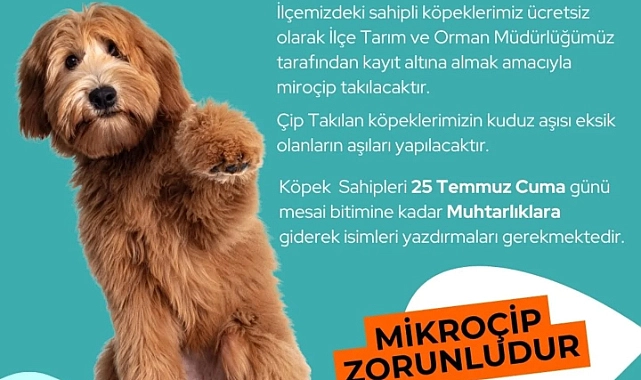 Köpek sahiplerinin, uygulamadan yararlanabilmeleri için 25 Temmuz Cuma günü mesai bitimine kadar bağlı bulundukları muhtarlıklara giderek isimlerini yazdırmaları gerekiyor.