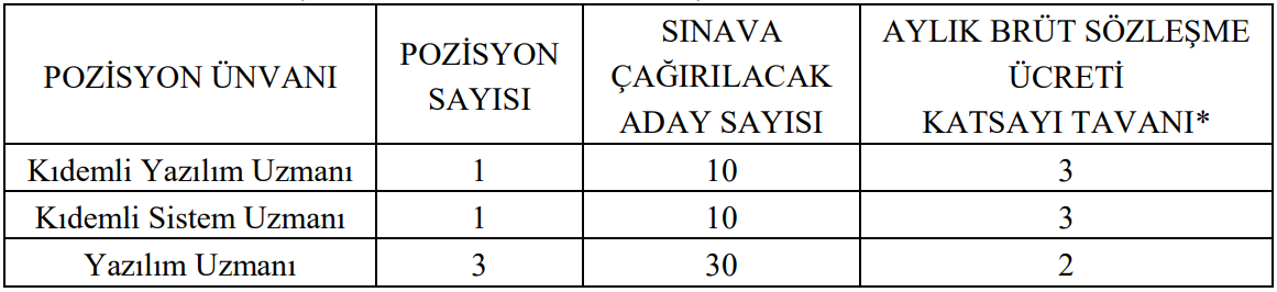 Her bir pozisyon için 10 katı aday yazılı ve sözlü sınava çağrılacak. Bu kapsamda toplam 50 aday sınav sürecine dahil edilecek.